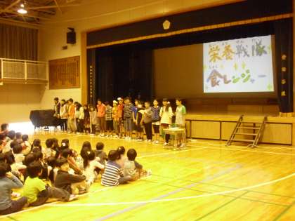 11月30日(金)の朝、体育館で給食委員会の発表集会を行いました。