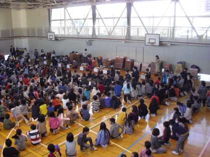 寒い体育館でしたが、ゲームが盛り上がったおかげで、集会が終わるころには、