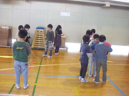 2年生の“あそびの先生”の話をよく聞き、はじめはやる気満々の1年生も、