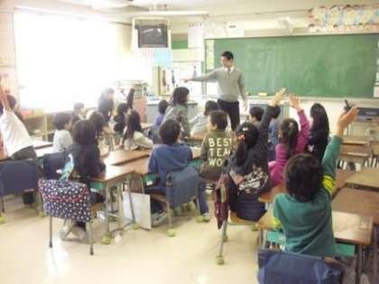 休み時間や給食の時間などは、英語で答える計算の言い合いっこをしていました。