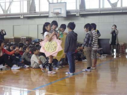 ・2年生による1年生へのプレゼント(メダル)贈呈