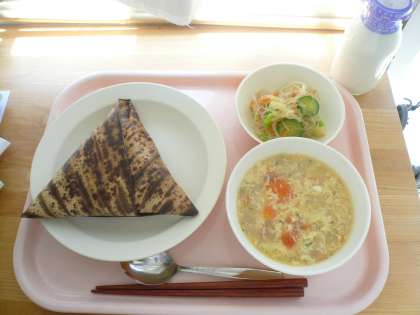 今日の献立は、中華ちまき、卵スープ、春雨サラダ、牛乳です。