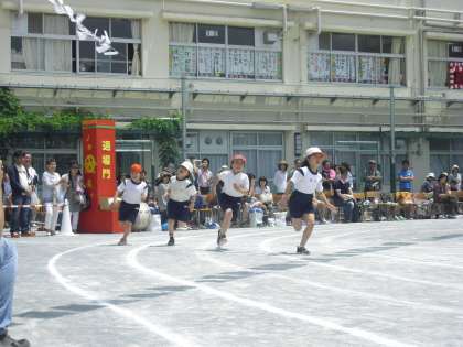 「荒馬」「おさるのかごや」「70m走」を行いました。