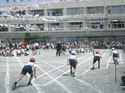 すばらしい晴天のもと、4年生は精いっぱい演技をしたり、競技に臨んだりしました。