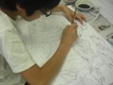 学校の近くにあるお寺の龍雲寺を、墨絵で描いています。