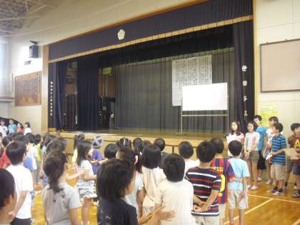 改めて中丸小学校について知った後に歌った校歌は、いつも以上に綺麗に体育館に響き渡っていました。