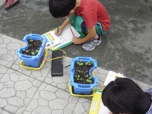 一組は、9月26日(木)植木鉢に二十日大根の種を植えました。