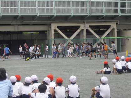 5年生児童の校庭中に響き渡るような大きな声を合図に、