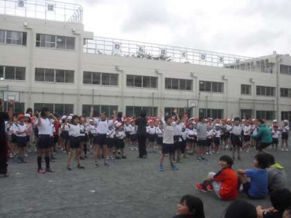 有志で作った、中丸応援団が先頭に立ち、6年生にエールを送りました。