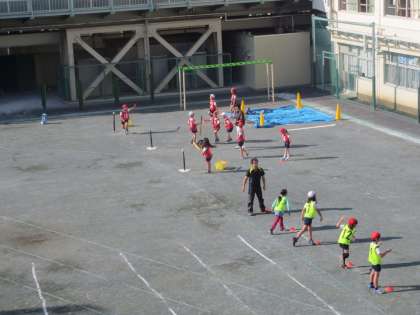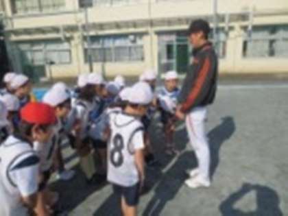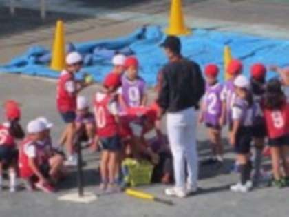 読売巨人軍振興部の方をゲストティーチャーにお迎えし、ティーボール教室が開かれました。