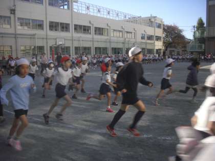 だんだん寒くなってきましたが、走り終わった後はすっかり暖かくなって、みんな頬を真っ赤にして、教室に帰っていきました。
