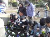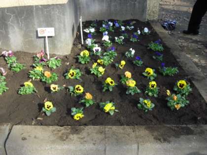 合わせて150株近くのパンジーを植えて、野沢公園が、ぱっと明るくなったようです。