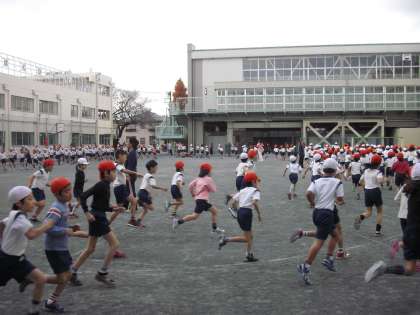 11月の下旬から、20分休みに校庭や学校の周りを走って練習しています。