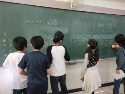 黒板に様々な意見を書いて、お互いに学び合う。