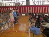 3年1組と2年1組、2年2組が体育館に集まって交流スピーチをしました。