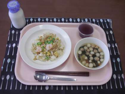 今日の献立は、ちらしずし・牛乳・すまし汁・ぶどうゼリー です。