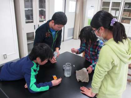 第1回目の実験は、火のついたろうそくをビンに入れ、ふたをするとどうなるか。