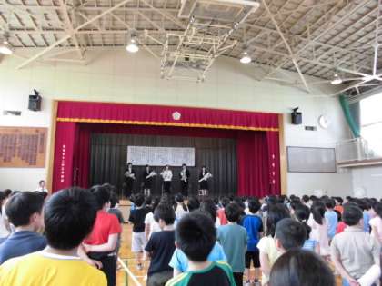 「君とぼくのラララ」と「校歌」を元気いっぱいに歌いました。