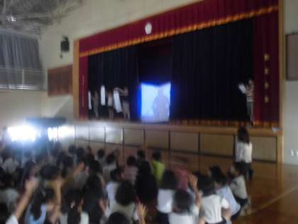 スクリーンに映された影が誰なのか、何をしているのか、ということを当てるゲームです。