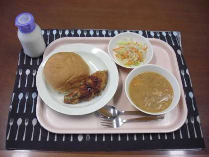 セルフフィッシュサンド・牛乳・トマトシチュー・コーンサラダ です。