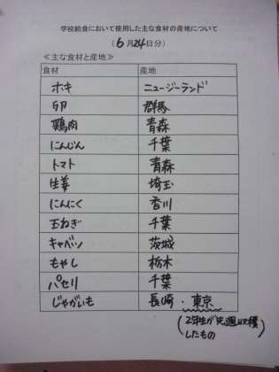 毎日の給食では、誰かが大切に育て、収穫したりした食材を届けてもらい、