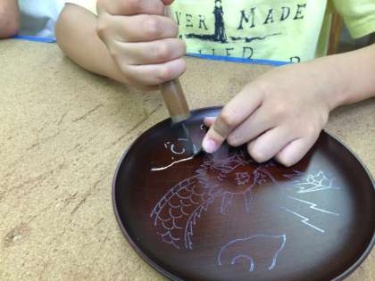 日光彫では、ここ日光の地だけで使われている特殊な彫刻刀を用います。