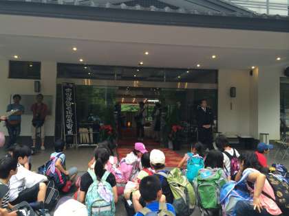 開園式を行い、3日間お世話になる宿の方に、元気に挨拶をしました。