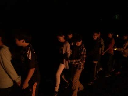 4つの誓いをしてから係の子が点火をし、皆で火を囲みました。