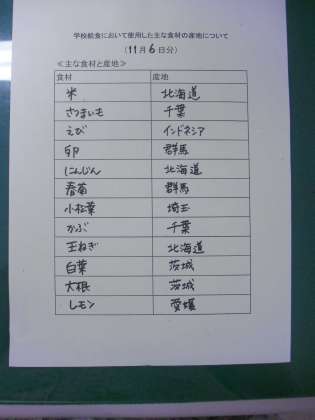 11月6日(木)の給食