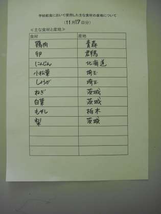 スープの肉だんごは、鶏ひき肉・卵・生姜・塩・ねぎ・ごま油・でんぷんをよく練り合わせて作った給食室特製です。