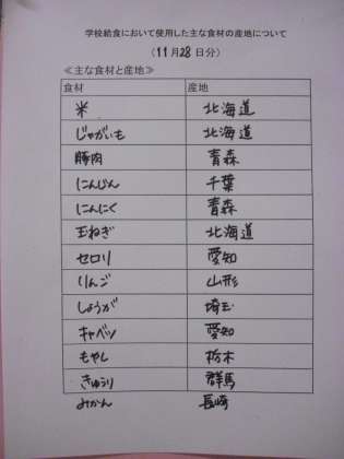今日、12月の献立表を配布しました。合わせて『みんなで楽しくおいしく〜和食を食べよう〜』という世田谷区で発行したパンフレットも配布しました。お子さんが持ち帰ったらぜひお読みください。12月の献立で、その中にあるレシピから2献立を参考に取り入れる予定です。