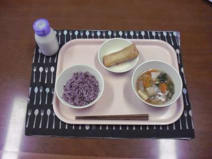 黒米ごはん・牛乳・春巻き・のっぺい汁 です。