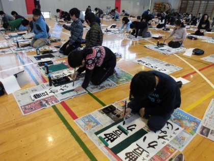 3学期がはじまり、早速、書き初め大会が行われました。