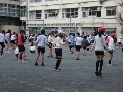3月に短なわ大会があるので、それに向けて体育の授業でも熱心に取り組んでいます。