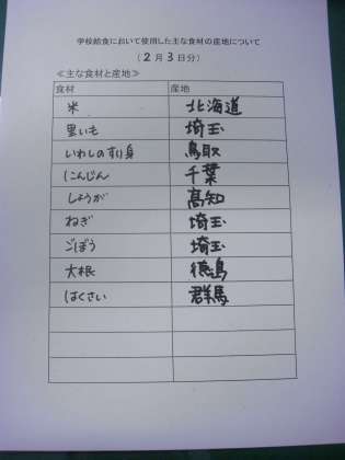 今日は下ゆでして素揚げして甘辛たれと絡めた大豆、青のりをご飯に混ぜた豆ごはん、鰯のすり身で作った給食室特製つみれを入れたおつゆ、大豆が原料のきなこをかけて食べるデザートの節分献立です。