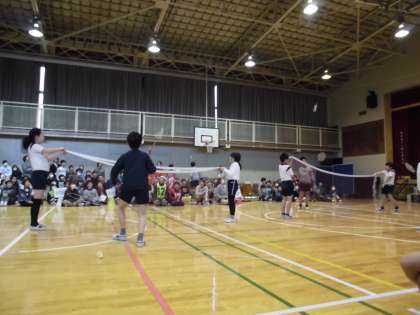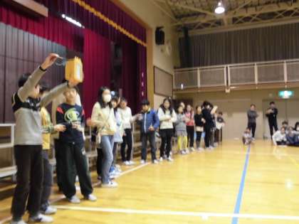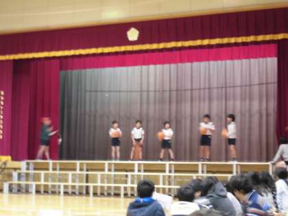 伝承遊びクラブは羽根つきやけん玉の技を見せ、3年生からリクエストを聞いて、その技を見せるという場面もありました。