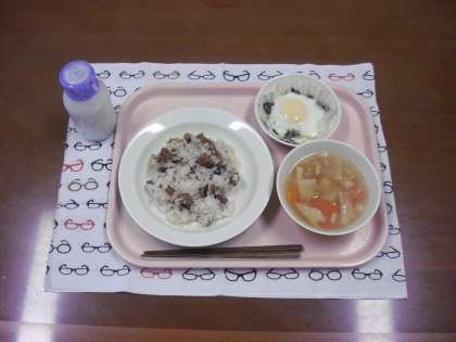 さんまごはん・牛乳・巣ごもり卵・吉野汁 です。