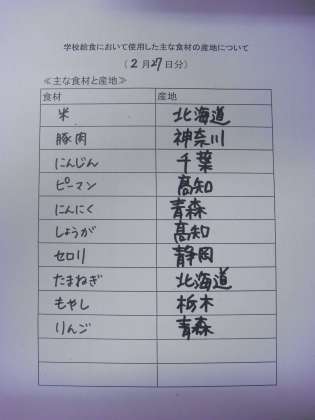 今日で2月の給食は終わりです。「1月は行く、2月は逃げる、3月は去る」という言葉があります。行事が多かったり、月の日数が少なかったりして1日1日が早く過ぎていくことをうまく表しているものですが、皆さんはどうでしょうか。