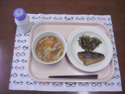 きつねうどん・牛乳・魚のカレー揚げ・青菜の乾物和え です。
