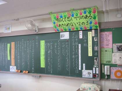教室中に先生たちがずらりと並び、いつもと違う景色に緊張気味の子どもたちでしたが、自分の考えをもち、友達と交流しながら学習することができました。
