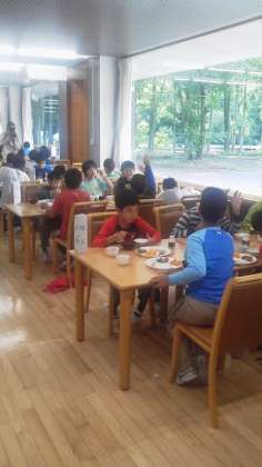 朝食をしっかり食べて、 山登りに備えます。