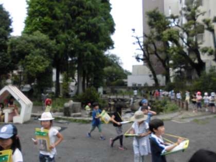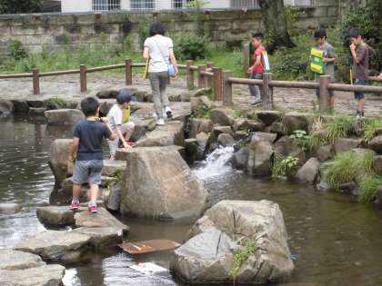 生活科「生きものと友だち」の学習で、鶴ヶ久保公園へ行きました。公園にいる生き物を予想してから、公園の調査をしました。小さなメダカがいたり、アメンボを見つけたり、チョウを見つけたりと、身近な生き物と出会うことができました。