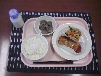 ごはん・牛乳・魚のみそマヨネーズ焼き・里芋の甘辛煮・