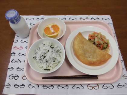 わかめごはん・牛乳・ジャンボぎょうざ・白菜の中華サラダ・