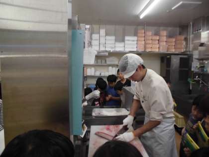 実際に、お店の中だけでなく、魚や肉がどのようにパックづめされているかを見たり、商品が保存されている冷凍庫に入らせてもらったりしました。