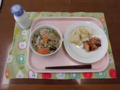 タンメン・牛乳・鶏肉の照り焼き・じゃがいものクリームあえ です。