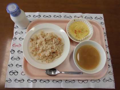ツナライス・牛乳・フレンチエッグ・コンソメスープ です。