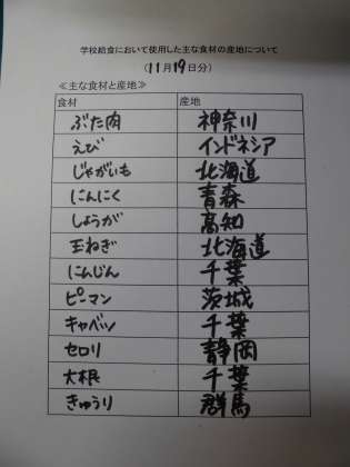 11月23日は“勤労感謝の日”です。給食を例にすると、とどこおりなく食事を出すためにみんなの見えないところで努力や苦労があることを忘れてはいけません。