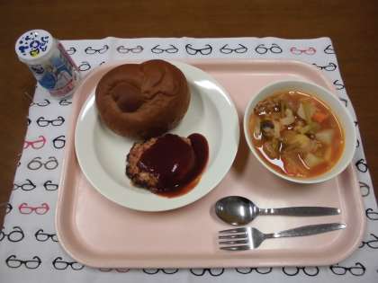 ココアパン・ジョア・アップルチーズハンバーグ・
