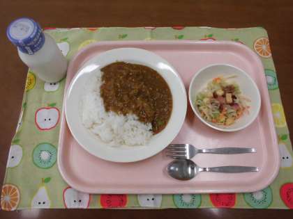 キーマカレーライス・牛乳・シーザースサラダ です。
